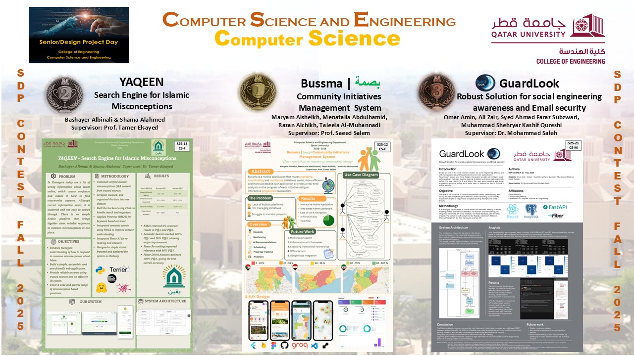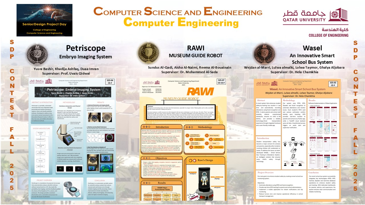 On December 2nd 2025, the highly anticipated senior project presentations took place at the state-of-the-art new engineering building H07. These remarkable projects, the culmination of tireless efforts by talented students, were subjected to rigorous evaluation by examiners from the CSE department. After careful deliberation, outstanding projects from each program, Computer Science (CS) and Computer Engineering (CE), emerged victorious. Exceptional teams of those winners will be chosen to proudly represent our department in the upcoming college contest. We eagerly anticipate the success that awaits our representatives as they compete at the college level, confident in their abilities, to make our department proud once again.
